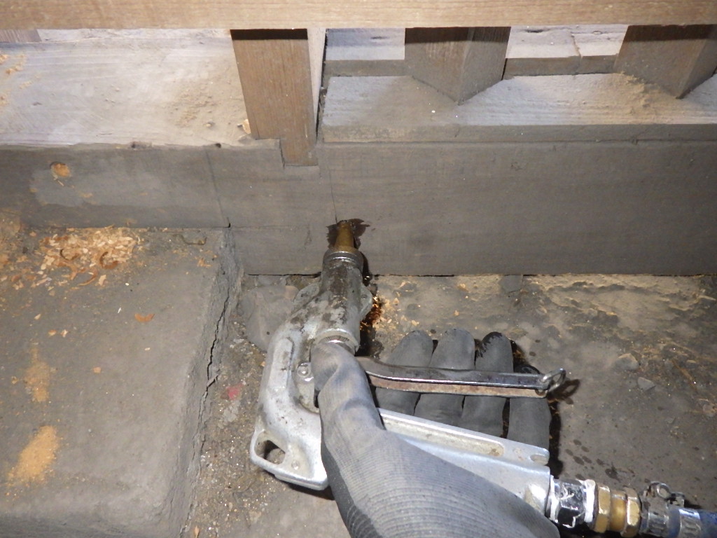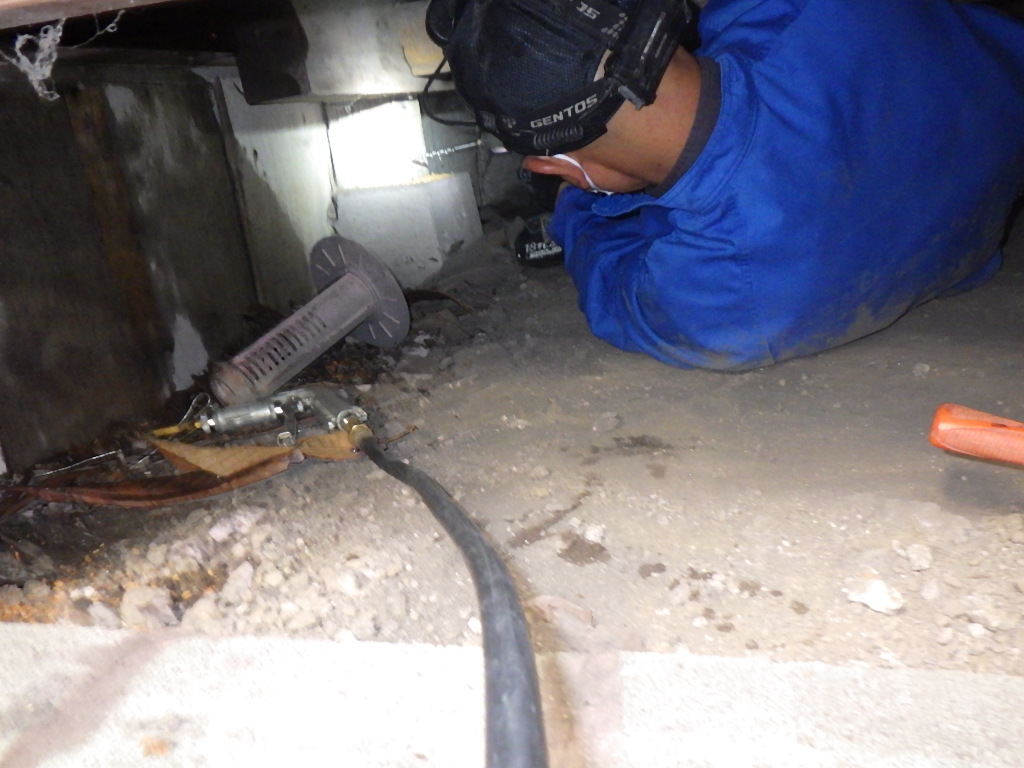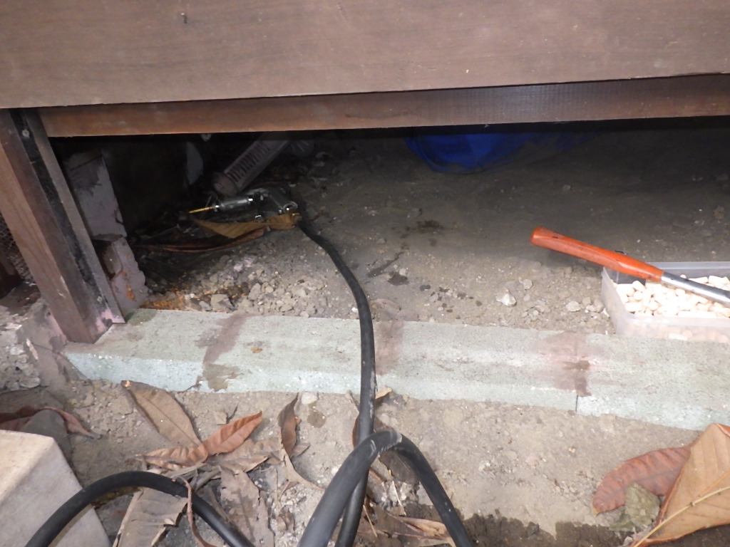 さらに床下全体、地面、外周りに薬剤を散布して作業は終了ですが