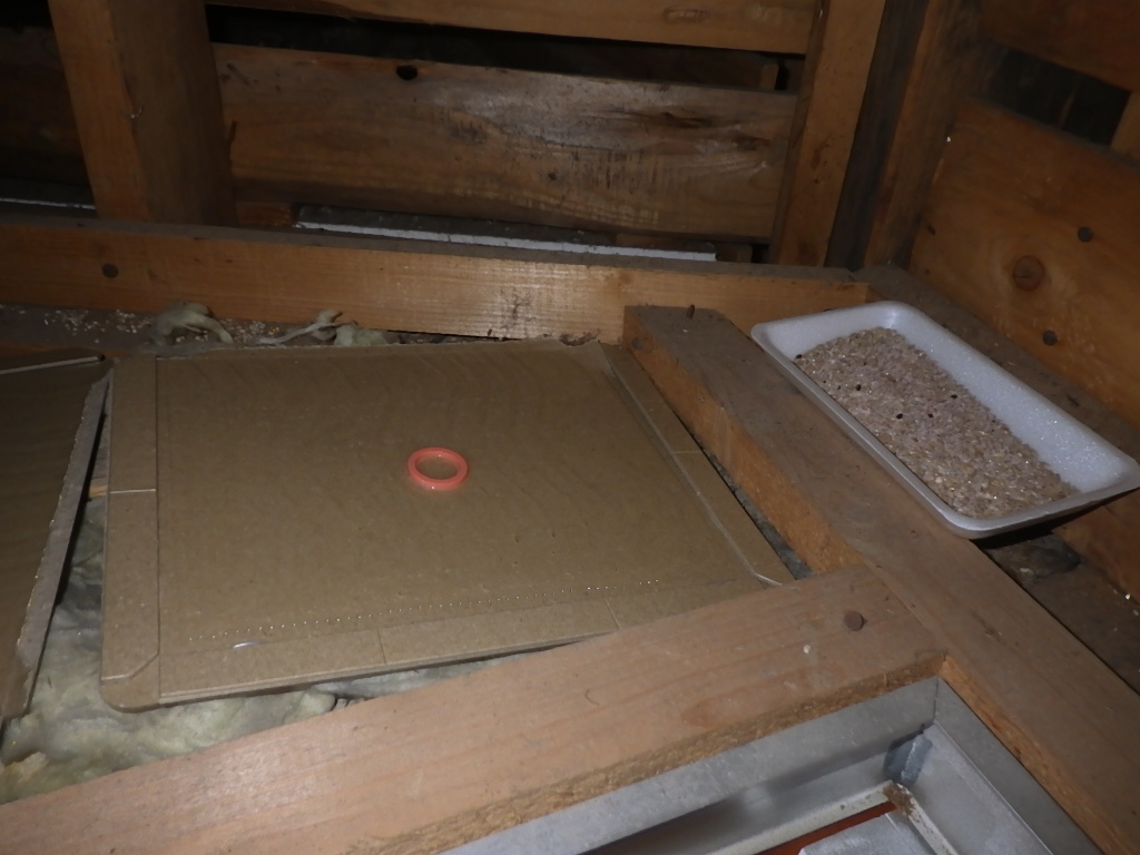 獣臭と糞がちらほらあり、断熱材が荒らされていました。