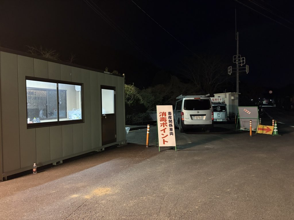 夕方から県の方と交代で消毒作業を引き継ぎます。私、鳥インフルは初めての事でしたのでドキドキしながら引継ぎ内容を聞き取ります。