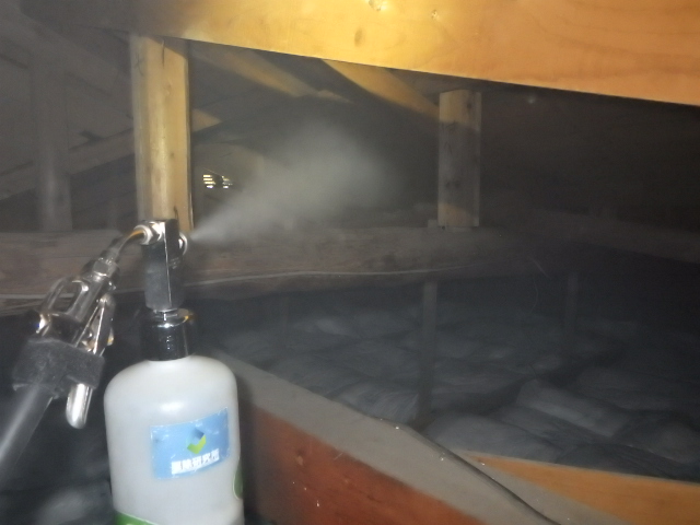 建物内の天井裏から室内まで今回は殺虫・殺菌消毒を行わせていただきました。