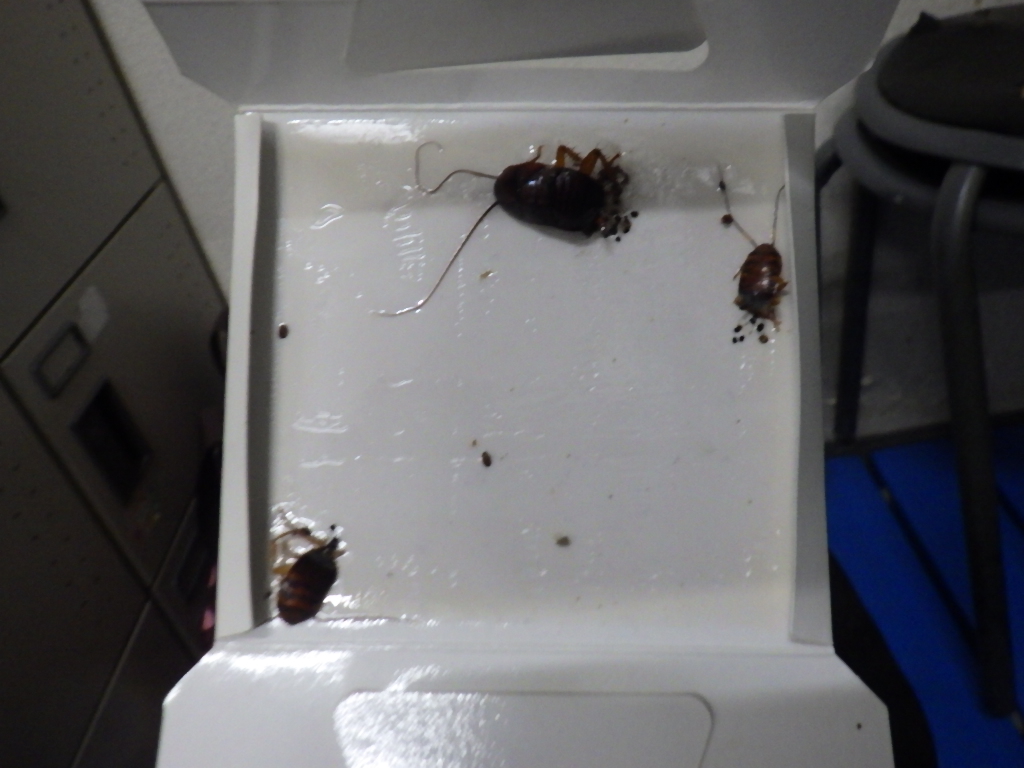 幸いどのお客様の厨房にも天敵Gの姿は無く、安心して予防の為薬剤噴霧やトラップの点検をしていました、が!