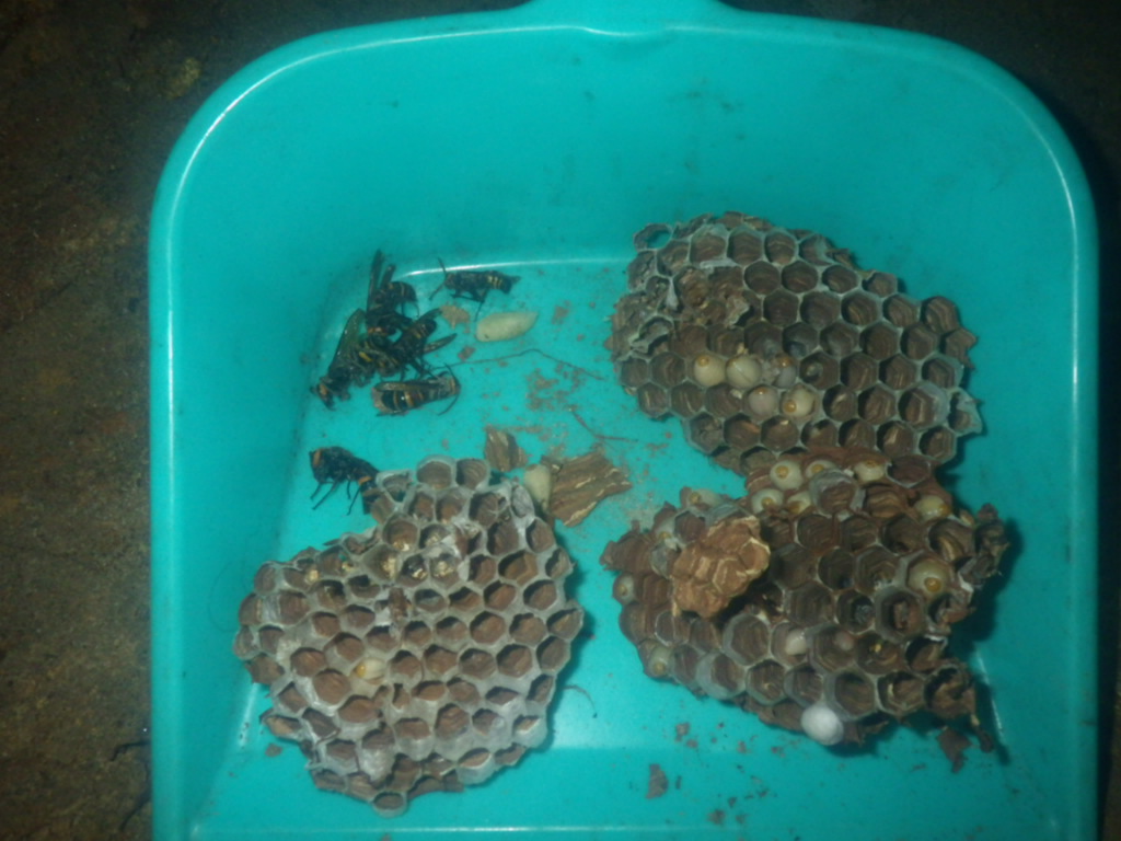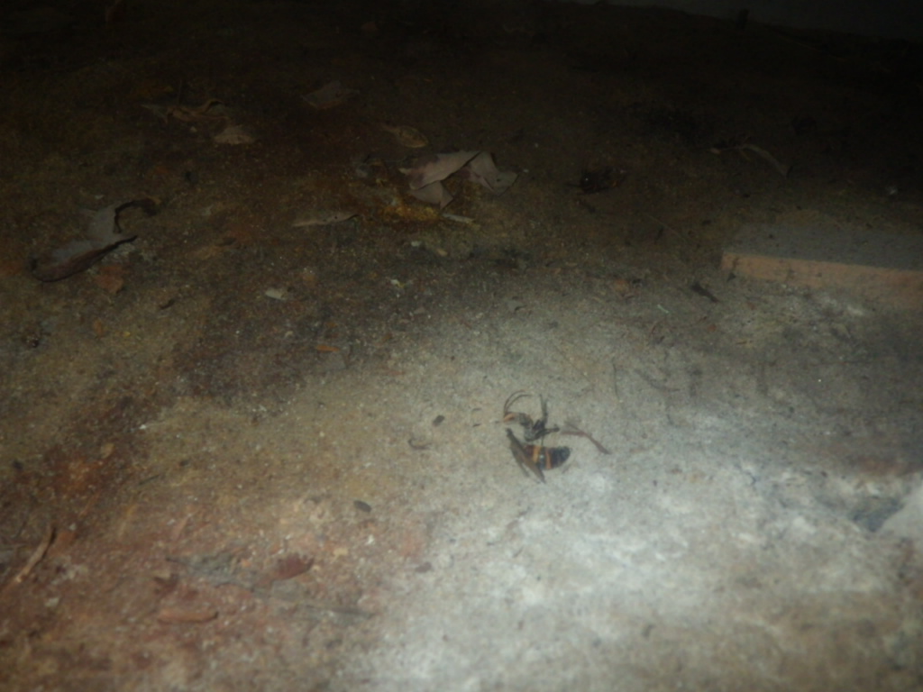 モンスズメバチは、夜間も活動するスズメバチで、暗いところへっちゃらで動きまわります。