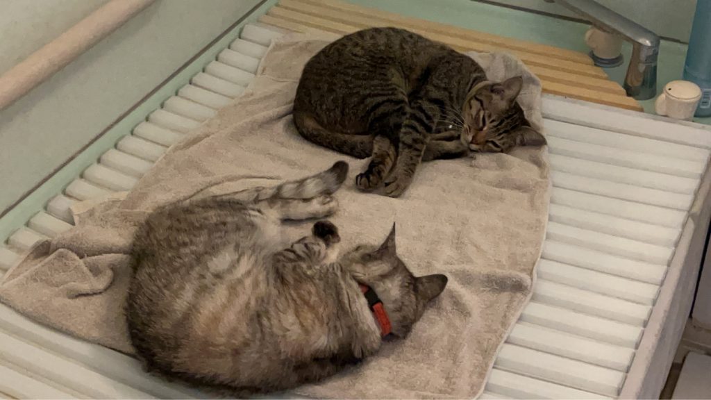 風呂場が 大好きで あったかくて 直ぐに 眠りにはいります。