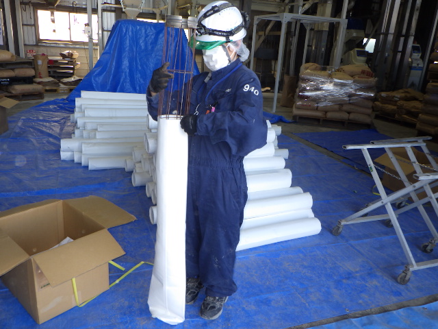 特殊施工と言っても様々ですが今回は食品工場で大型の集塵機内の清掃とフィルター交換という特殊施工です。